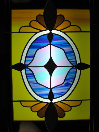 ![]() 「窓辺の風景」 窓際に飾っているこの作品、 太陽の光がさすと、 反対側のクローゼットのドアに 綺麗な光の模様が映し出されます。 この光の色がグラスアートの美しさです。 |