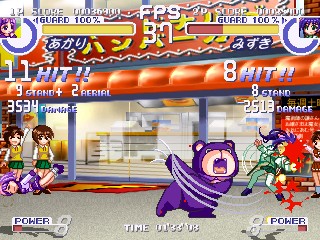 吹っ飛ぶあかり。しかし全身無敵が切れ、クマ発動。