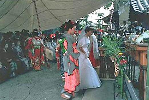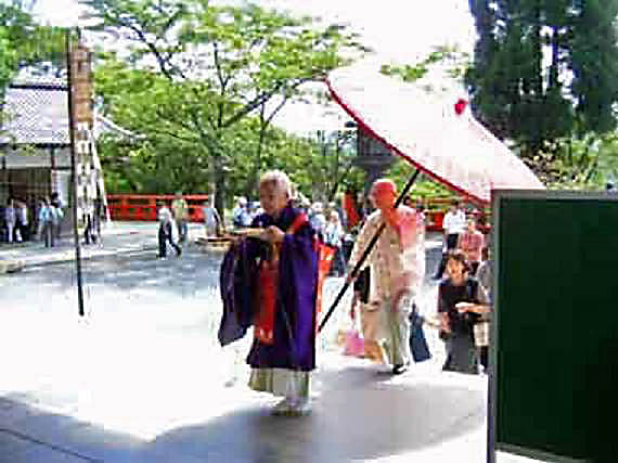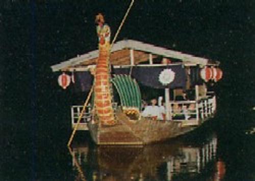| 9月3日(日) 八 朔 祭 松尾大社 TEL 075-871-5016 ○祭典は10時からで、風雨安穏、家内安全祈願がされ、奉納相撲も行われます。 16時頃からは嵯峨野六斎念仏が奉納されます。境内一円、数千個の提灯の明かりの中で 行われる京の伝統芸能を見物に多くの人々が訪れます。 山ぶき会「女神輿」の巡行は 10時 大社出発 ⇒ 13時頃 渡月橋付近で船渡御 ⇒ 16時 大社に帰る |