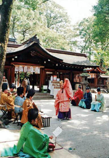 | 9月9日(土) 重 陽 祭 車折神社 TEL 075-861-0039 ○平成9年に130年ぶりに再興された催事は好評です。菊の挿頭(かざし)をつけて舞う舞楽は 洛西の社に趣を添えます。菊酒も振舞われ長寿を祈願します。 |