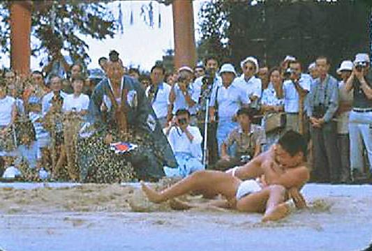 | 9月9日(土) 烏相撲と重陽の神事 上賀茂神社 TEL 075-781-0011 ○神事後、子供達により烏相撲が奉納されます。相撲の前に白い装束をつけた二人の刀祢 が「カーカーカー」「コーコー」と烏の鳴き声で受け答えをするユーモラスな儀式が行なわれます。 9日は重陽の節句にあたり、昔、賀茂の住人が烏族といわれたことから烏相撲といわれた とのことです。 |
