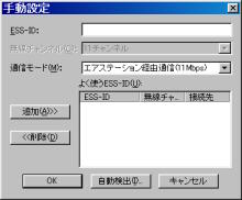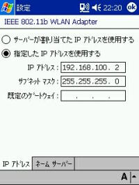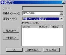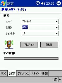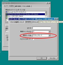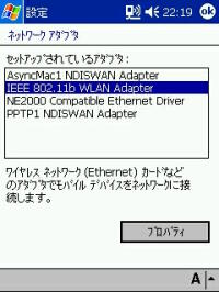 まず環境ですが、 母艦:ソニーVAIO PCV-R70 無線LANカード:メルコWLI-PCM-L11GP PDA:e740W です。 とりあえず母艦とe740をルータなどを介さず直接やり取りすることを目標としました。 いや、難しい設定をしたくないというより、余計な投資を避けるためです。 母艦側のメルコの説明書を見ると、PC間無線LAN通信というモードを使えば、 他のPCやPDAと直接やり取りできるようです。 e740の説明書を見るとアドホックモードにしてPC側のチャンネルに合わせれば、 PC側と通信できるようになるとかいてあります。 とりあえずe740の方は以下のように設定してみました。 ![]() ![]() ![]() ![]() PC側のメルコのカードもPC間無線LAN通信でもチャンネル設定が出来るので、 こりゃ話が早いと思ってやってみると・・・。 ![]() サッパリ通信できません。 ココでいろいろ試してみたのですが、通信できない状況は変わりませんでした。 で、ネットで検索してみると、PC間の無線LAN通信は「アドホック」というのが一般的 なようなので、こちらの方をメルコの説明書で探してみると・・・。 見事に載ってません。 しかし、無線LANの項目をいろいろ調べてみると、 ネットワークコンピュータ−プロパティ−内のメルコのLAN Adapterの「基本設定」で、 プルダウンでアドホックを選べるようになっていました。 こんなこと当然メルコの説明書には載ってません。 これで出来るだろうと思ったのですが、まだ通信できませんでした。 ここで思いきってPC側を、無線LAN通信モードから エアステーション経由通信にしてみると、やっと通信できるようになりました。 ![]() ![]() しかし、このモードでも一度PCカードを抜いてしまうと共有ファイルへの アクセスは出来ないけど、ActiveSyncはできるという謎の挙動なので、 まだどこか設定方法が間違っているのかもしれません。 一応、再起動をかければちゃんと共有ファイルも見れるようになりますが・・・。 もしこれを読んで心当たりのある方はアドバイスなどお願いいたします。
