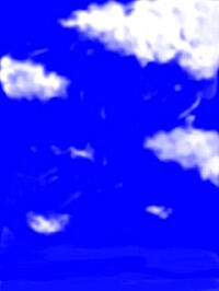 | 「毎日空を見上げてますか 空はこんなに青いのよ」 (松崎ナオ「花びら」より) 早くこんな空を見たいですね。 というわけで、久しぶりのモバ絵は 白と青だけで空を描いてみました。 (↑手抜きとも言う) しかし、e740Wで見るともっといい色合い なんだけどなあ。 e740Wの色はよくわからないなあ。 2003.07.03:e740W |