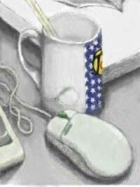 | 職場の机の上。 コップは何年か前にピザ屋でもらったもの。 しかし、もらった次の日にお店は潰れてた。 最初E-500で描いていて、途中で GFortに換えたら下のほうに隙間が 空いちゃった。 |