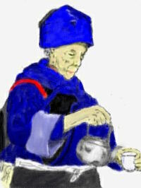 | 今度はお茶くみおばちゃん。 歌丸師匠ではありません。 背景は描けなかったけどまあまあかなあ。 この前のおじさんともども、 雑誌の写真を見て、絵の練習として描いてみた。 |