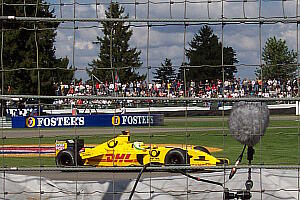 歴史あるインディアナポリスモータースピードウェイです。 フリー走行までちょっと時間があるので出店を見たりお散歩。 このインディアナポリスにはミュージアムがあり、そちらの方に行くとテントの中に昔のF-1がいっぱい。 これは後述するヒストリックパレードに出場するクルマ達でした。 フェラーリ312T2、T5、ロータス79、ウィリアムズFW08、 ティレル、シャドウ、ペンスキー、マーチ、BRMなどがありました。 その他、オレンジのブースには今回もこなかったアロウズ(残念)のマシンがあり、 メルセデスのブースでは去年型のマクラーレンが置いてありました。 インディアナポリスといえばブリックヤード。 その名の通り、コントロールラインはレンガ作りでした。 この辺でトイレに行ったときにe740Wを落としてしまいました。 地面につく直前に蹴っ飛ばして(ホントはトラップしたかった) 直撃ははなんとか防ぎましたがちょっとスリキズがついてしまいました。 しかし、この後不調に陥り何もしてなくてもフルリセットがかかったりと、 かなり挙動が不安定に。何回も何回もリカバリすることになりました。 この日のフリー走行一回目はピット出ロのパドック側で観戦。 朝はちょっと雨降りで肌寒かったけど、だんだんと晴れていく天候でした。 スピード制限で遅い車の写真をとり、その上ストレートでマシンの一番スピードが乗ったときの音も楽しむ・・・。 つもりだったけど、思ったよりも速くて写真はうまく取れませんでした。 ただ、初めて聞くF‐1サウンドはやっぱり大迫力。 エンジン音というより金属音でしたね。 この回は、終盤バリチェロが13ターンでクラッシュで中断したけど、フェラーリはミハエルがトップ。 2位はフィジケラ。琢磨は6位でジョーダン勢は期待が持てる。最近好調のジャガーも頑張る。 反対にここ最近の流れどおりマクラーレン・ウィリアムズはとりあえず様子見のような感じ。 ジャッ・クビルヌーブ選手。 第二の地元と言えるこのGPでは大活躍! アラン・マクニッシュ選手。 周回を重ねてたけど全体的に苦しい展開でした ちょっと分かりづらいけどミカ・サロ選手。 トヨタ勢はこのコースはつらかったみたいです フリー走行二回目の頃になると、かなり天気は良くなってました。 移動の間に、フェラーリチャレンジで使うマシンのパドック(立ち入り禁止じゃなかった)のすぐ脇を通ってきました。 このセッションは主に10ターン辺りで観戦。 ここで、ばったりツアーの人と遭遇。車速が落ちて写真が撮りやすく、 全開で立ち上がっていくので迫力がるとのことで、一緒に観戦しました。 ただTCSのため、エンジン音は思ったよりも抑え気味でした。 なかでもミナルディの音はTCSが効きすぎなんじゃないかと思うほど悪かった。 反面ホンダエンジンは、直接見えないバックストレートエンドの音までも甲高くイイ音が聞こえてきました。 現在のF-1では間違いなく一番イイ音ですね。 同じエンジンでもBARよりもジョーダンの方がちょっとイイ音がしている感じでした。 このセッションの最後は、スタートライン真下のトンネルに移動してF‐1サウンドの迫力を味わいました。 セッション終盤の猛ラッシュで次々にマシンが駆け抜けていき、かなりものすごい音でした。 この回は、序盤に琢磨がクラッシュ。1回目が良かっただけに残念。 その後琢磨は1回目クラッシュのバリチェロとともに走れず。 トップはシューマッハ。ジャガーは引き続き好調。 マクラーレン勢はもちなおしたもののウィリアムズ勢は依然タイム上がらず。 といった感じでした。 ペドロ・デ・ラ・ロサ選手 最近ちょっと不調。今GPでもイマイチ 佐藤琢磨選手 決勝はアグレッシブでしたが、 やはりフリー・予選が消化不良だと厳しそうでした ニック・ハイドフェルド選手 頑張っていたのですが、ザウバーは毎年後半つらいですね ジャンカルロ・フィジケラ選手 ホンダパワーもあって入賞に後1歩まで ただ、ホンダは両チームとも片方のドライバー しか活躍できませんでした |