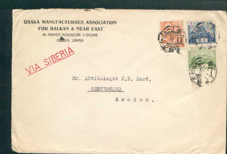 1936年6月3日16銭大阪西印・スウェーデン宛