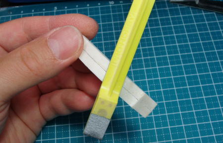 紙やすりで形を整える。 写真の様な模型用のヤスリが使いやすい。 |