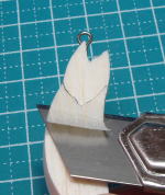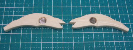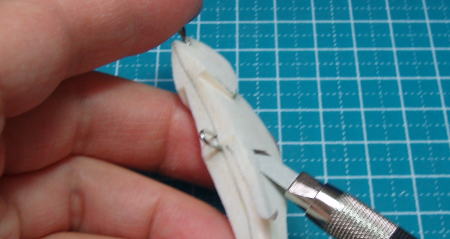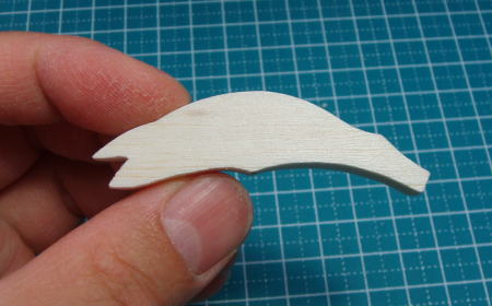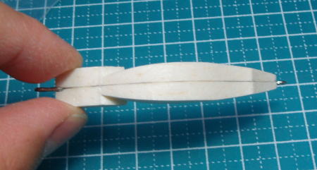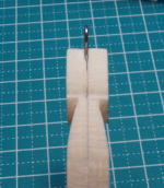 1日以上乾燥させた後、 ヤスリを掛け、形を整える。 その後、セルロースセメントに 上下交互に3回どぶ漬け。 |
