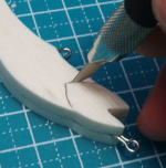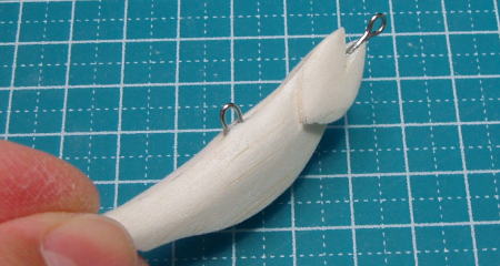同様に腹側も削り、 エラの溝を切り出す。 |