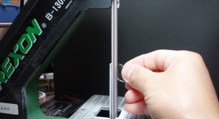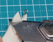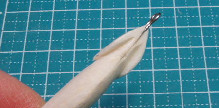 ステンレスの針金20番(0.9mm)を曲げ、 スレッドを巻いて補強する。 |