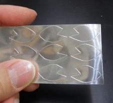 キッチン用のアルミテープに、 ウロコ模様を描き、切り抜く。 インクの切れたボールペンが使い易い。 |
