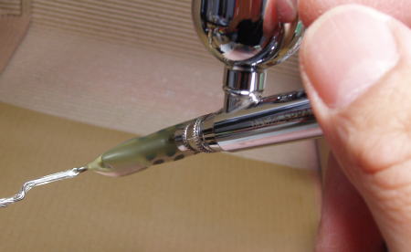 パーマークの型をあて、 エアブラシで顔料を吹き付ける。 |
