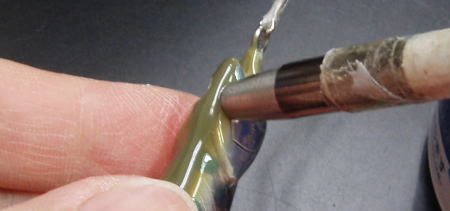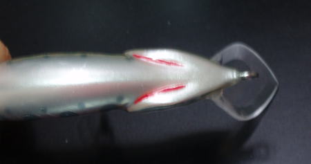 仕上げに、エラに掘った溝に沿って 赤を入れる。 |