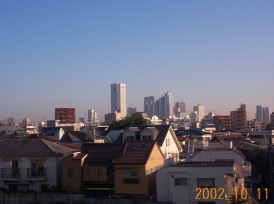 夜、新宿の高層ビルの灯りを見ながら、煙をくゆらしています。