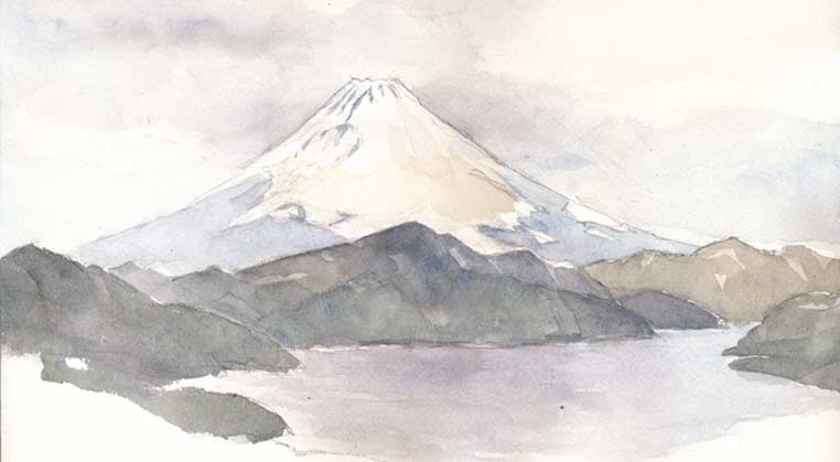 いちおう絵日記形式なので、スケッチ更新しておきます。震災前の3月上旬大観山近くの展望広場から。