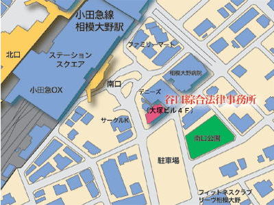 小田急相模大野駅南口下車後、向かって右のエスカレーターを降りて頂き、サークルK(進行方向左手に見えます。)の道路隔てて向かいの茶色のビルの4階となります。(1階はガストというファミリーレストランです。) |