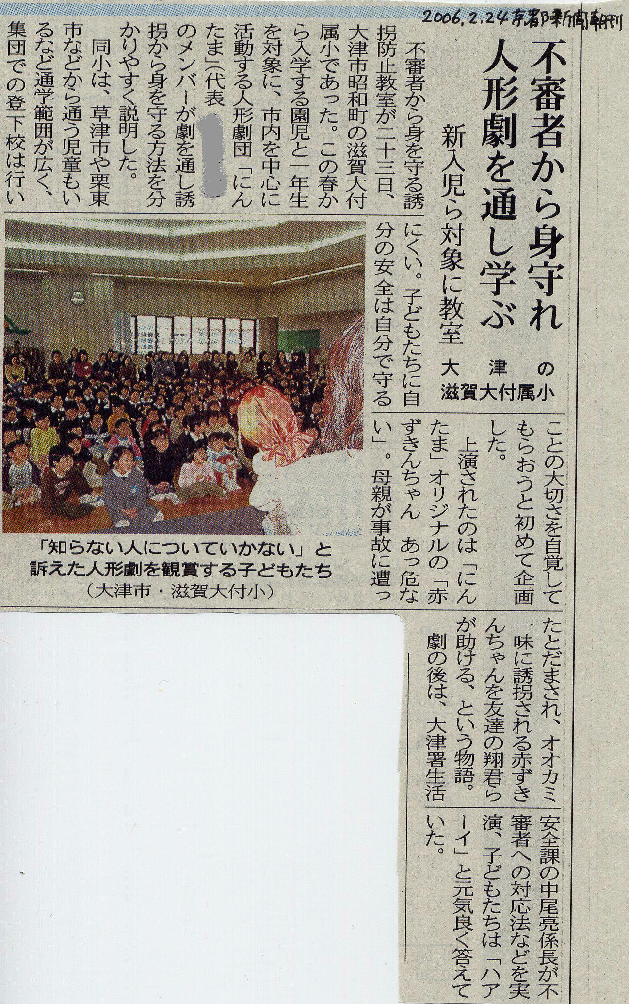 ★2006年2月24日:滋賀大附属小学校での公演が京都新聞に載りました。