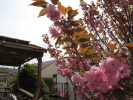 八重桜が四分咲きになりました。 そしてお隣さんの丸坊主だった樹の葉っぱもだいぶ出てきました。これからどんどん生い茂り、ジャングルのようになります。二階の屋根より大きく、年毎に大きくなっていくのがわかります。 この樹の名前、何というのでしょうか? 花、樹木のこと、私たち恥ずかしながら知らないのです。どなたかご存じの方、教えて頂けませんかしら…。