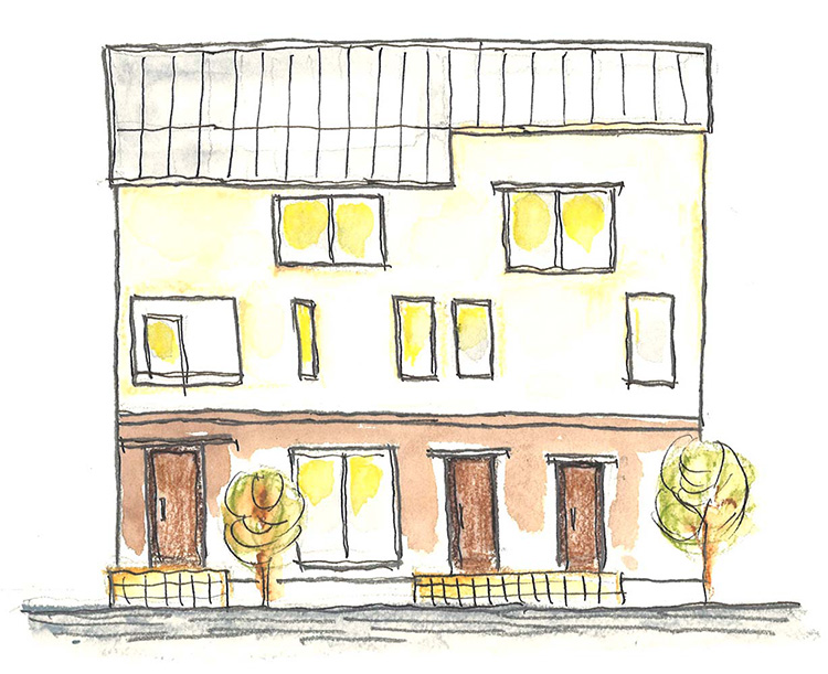 1階は1ルーム賃貸住宅2戸、2・3階は和室を設けた住まいに