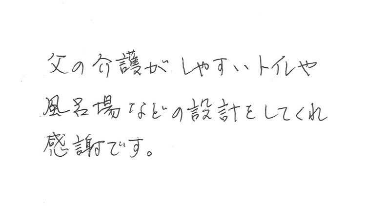 父の介護がしやすいトイレや風呂場などの設計をしてくれ感謝です。