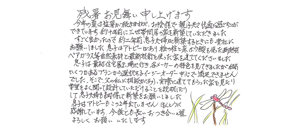 すごく良かったので約二年前、息子夫婦が新築するときも貴社にお願いしました。